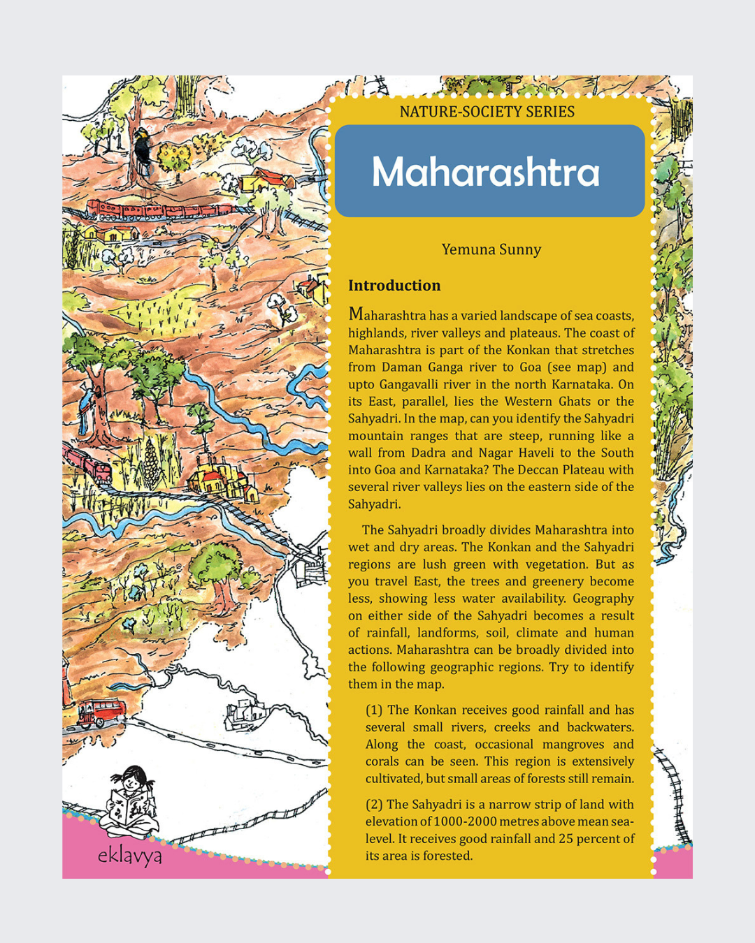 # Each book, on an Indian state/UT, is around 3500 words.The text is closely connected to an innovative map (scale 1 cm= 20 km) created through an amalgamation of cartography and art.